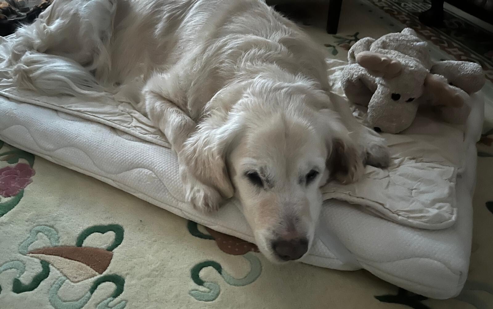 "11 v. seniorikoiramme Oiva menee lähes nirvanaan, varsinkin koirakuiskaajan hieroessa pään aluetta."